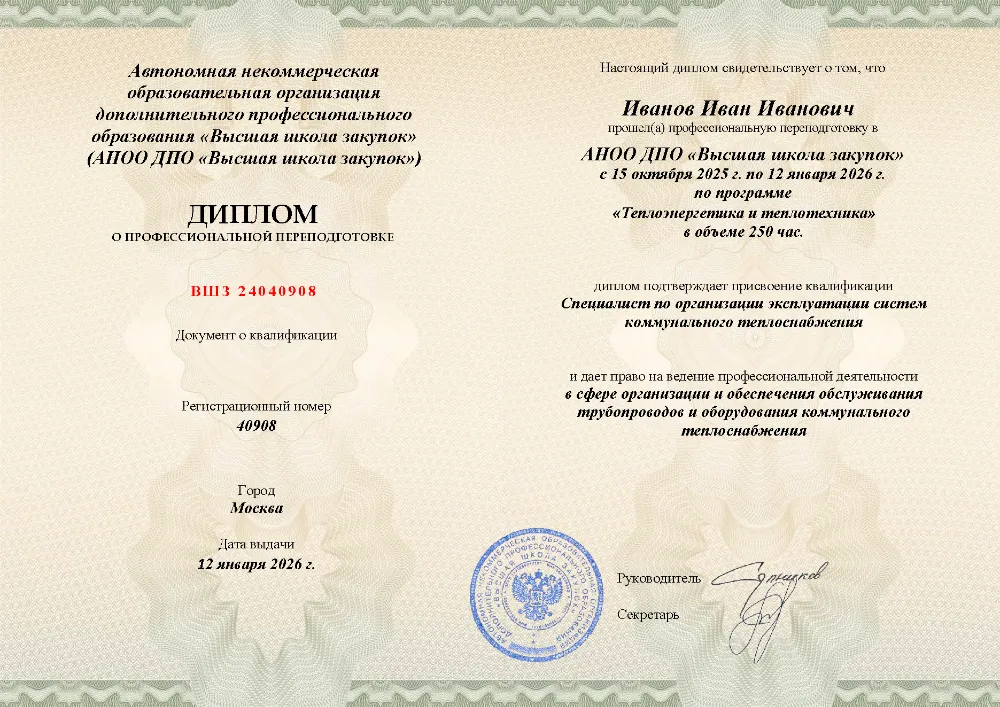 Курс повышения квалификации (40 часов) по эксплуатации тепловых энергоустановок и сетей, включая котельные в Москве. Освойте ключевые аспекты безопасной и эффективной работы, технического обслуживания и управления тепловым оборудованием в соответствии с нормативными требованиями.